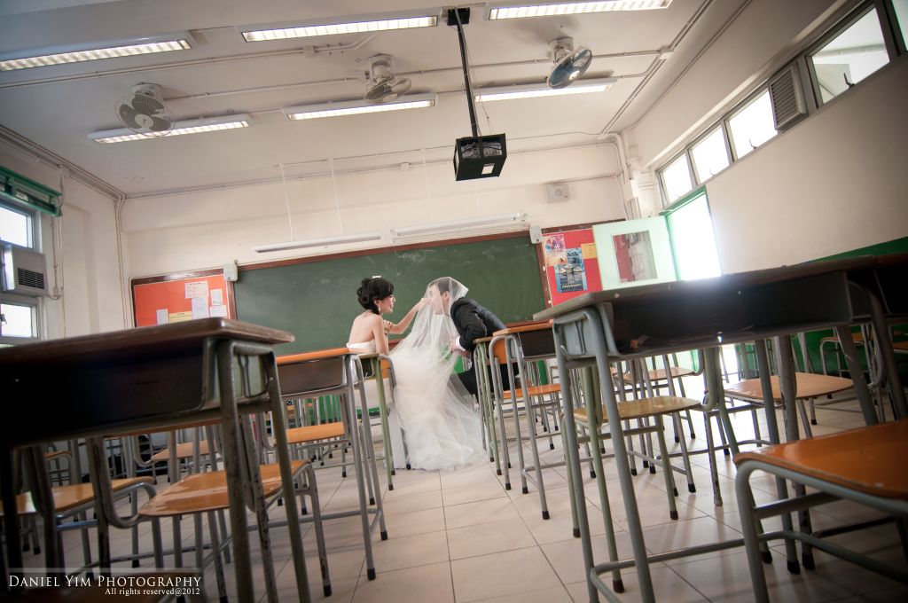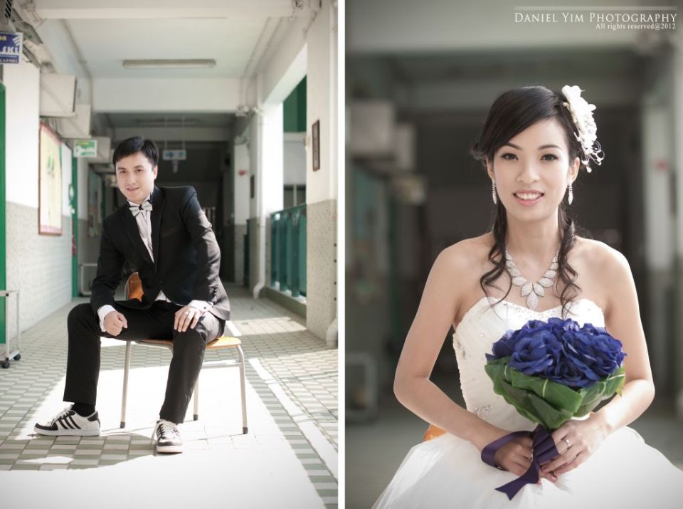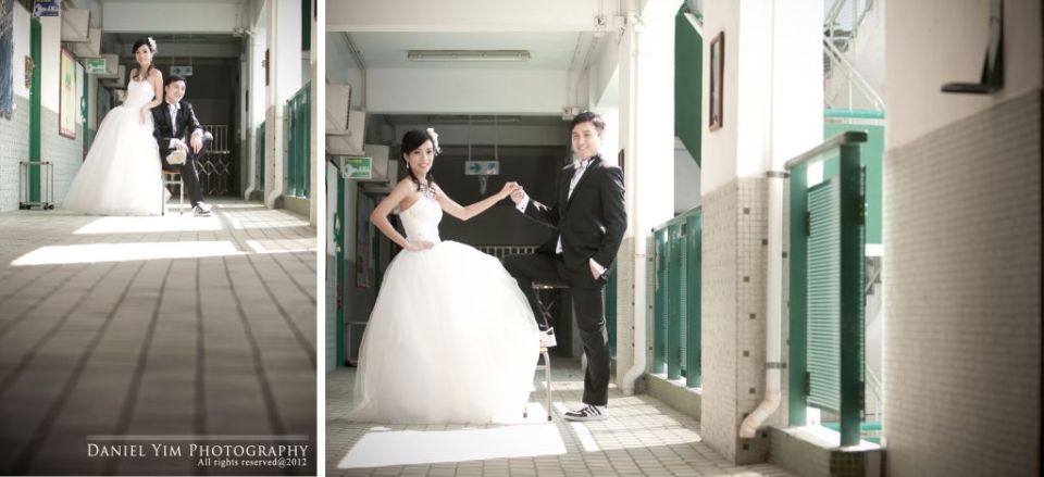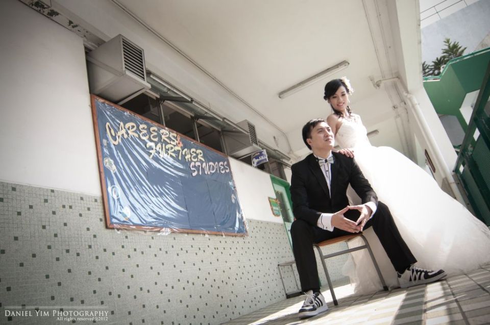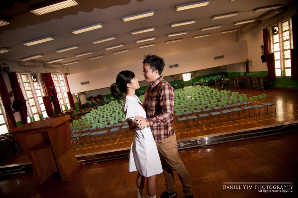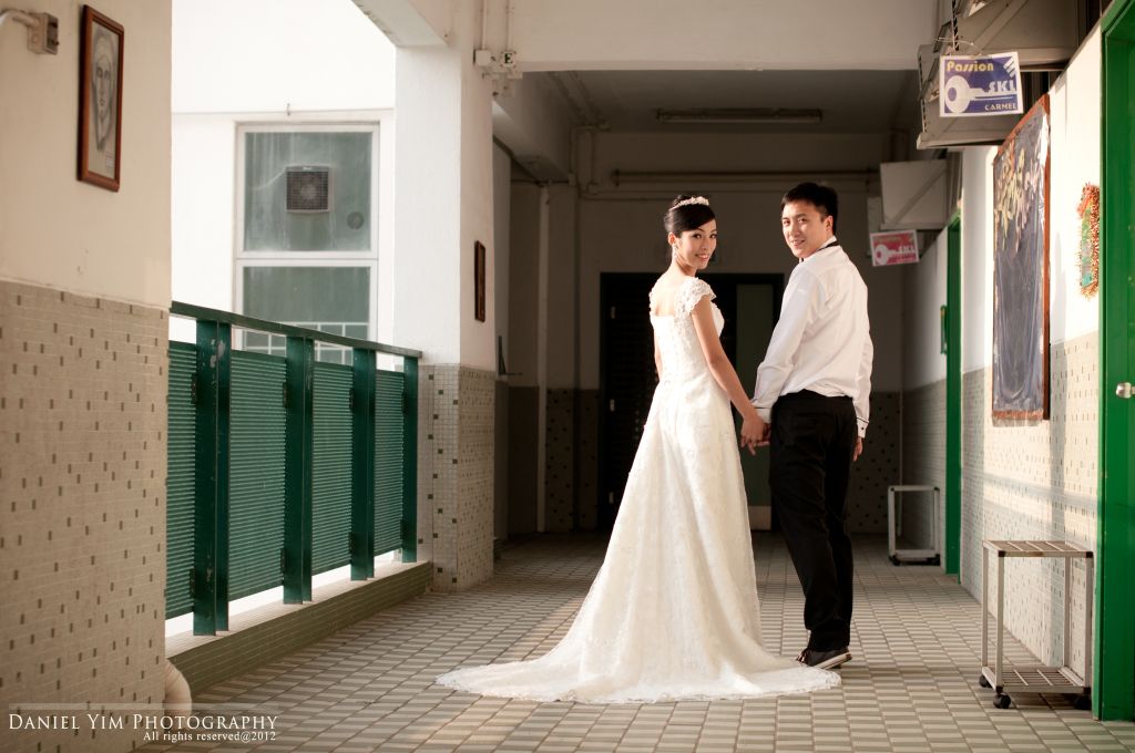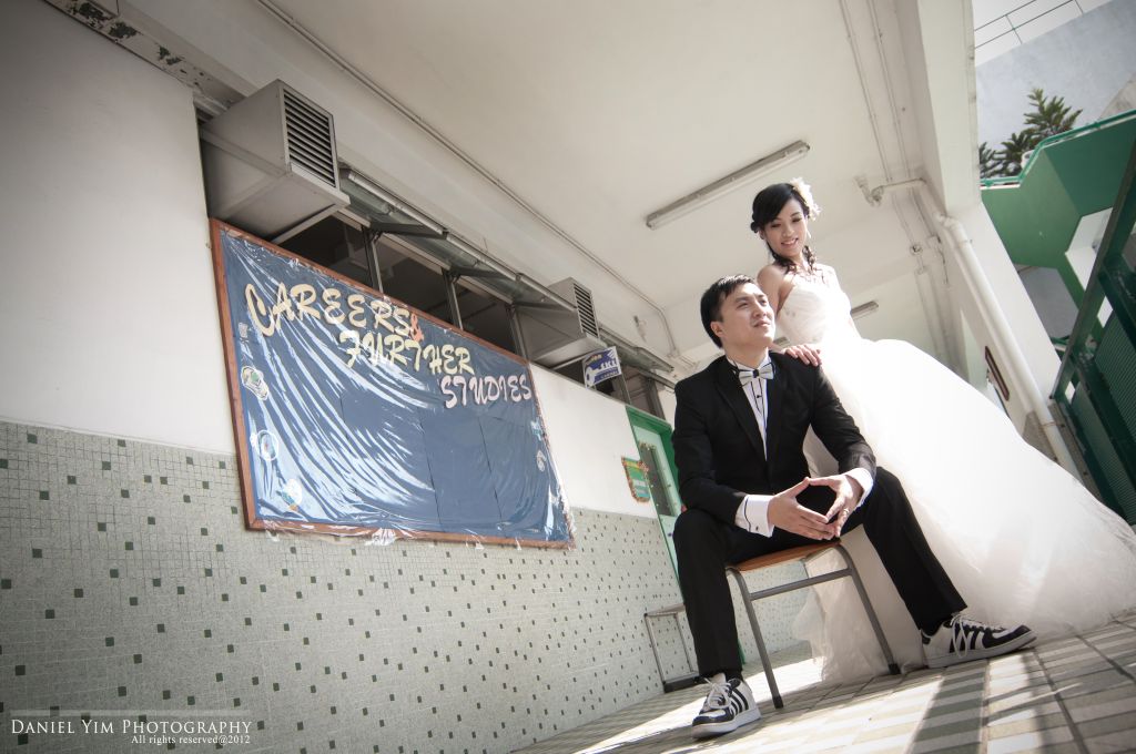 Dickson o係我婚禮時的兄弟, 我的舊同事。而佢同Joannica中學時已是同學, 經過多年後終於拉埋天窗, 我認為影pre-wedding除了去外國, 香港的著名景點外, 能夠去到一些對新人有紀念價值的地方影婚紗相, 對新人來說是很有意義的。今次能夠有機會去他們的中學影了半天, 很開心!