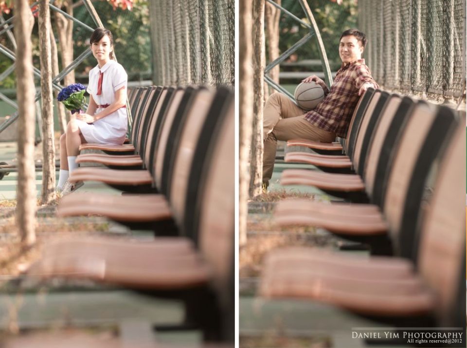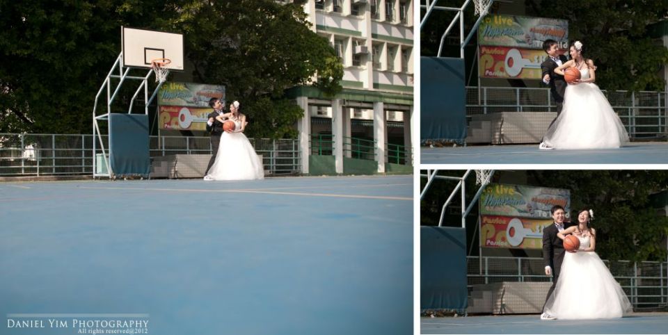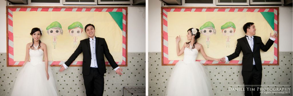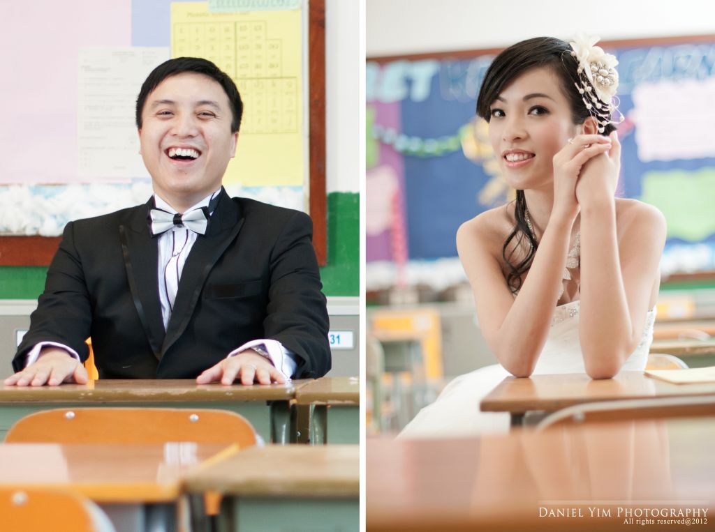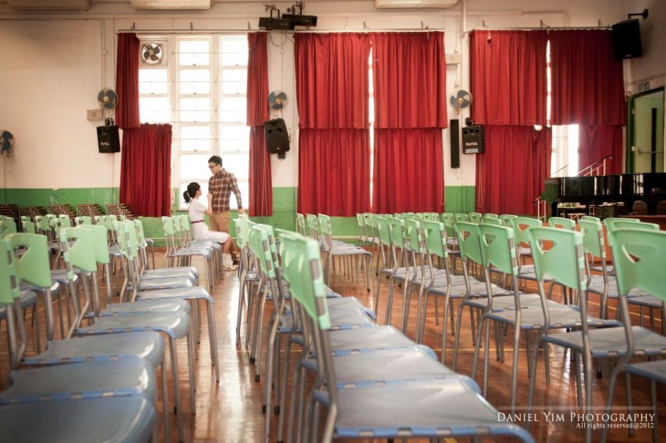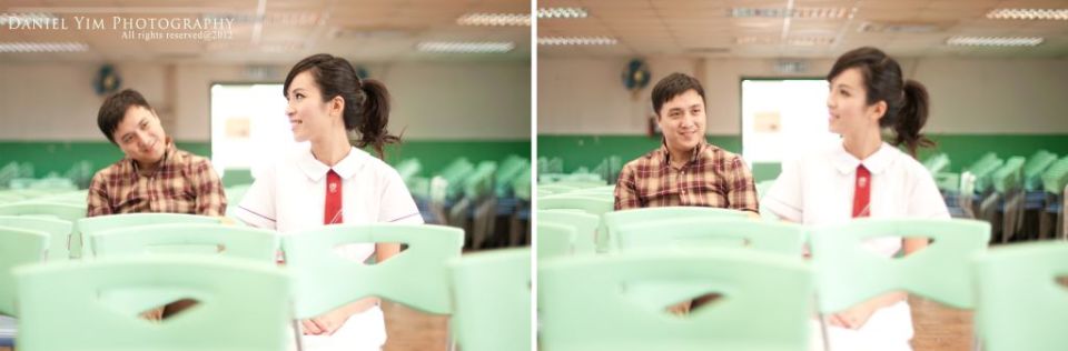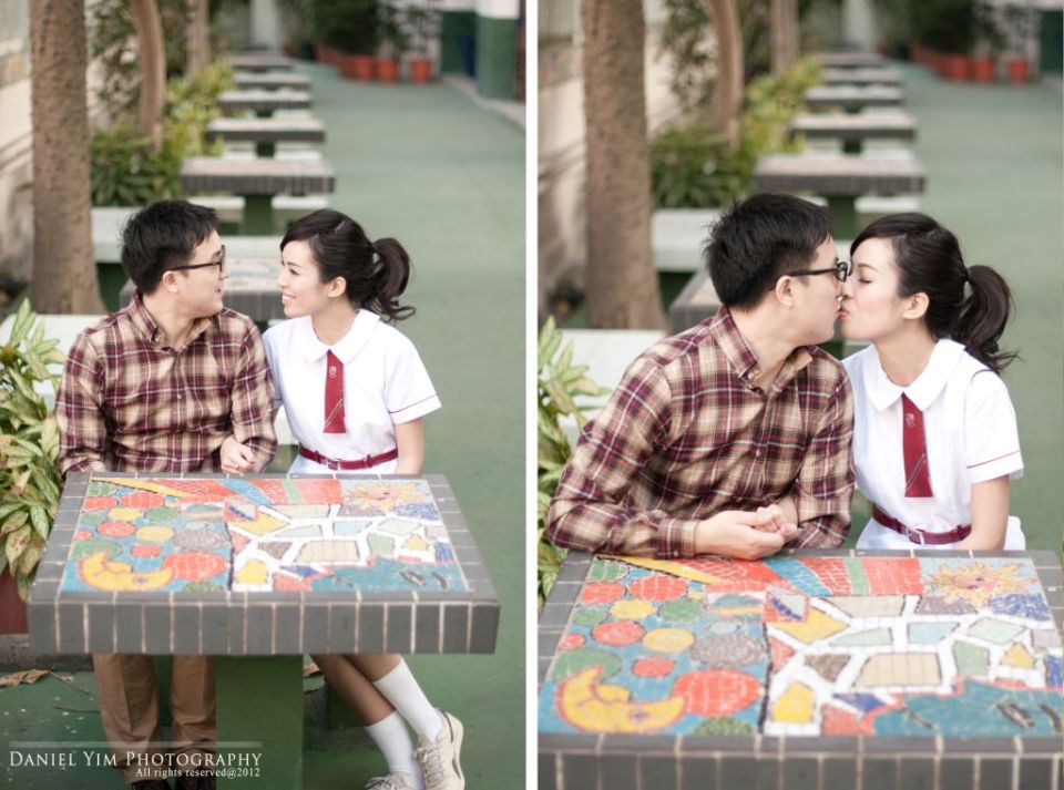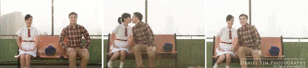 Dickson o係我婚禮時的兄弟, 我的舊同事。而佢同Joannica中學時已是同學, 經過多年後終於拉埋天窗, 我認為影pre-wedding除了去外國, 香港的著名景點外, 能夠去到一些對新人有紀念價值的地方影婚紗相, 對新人來說是很有意義的。今次能夠有機會去他們的中學影了半天, 很開心!